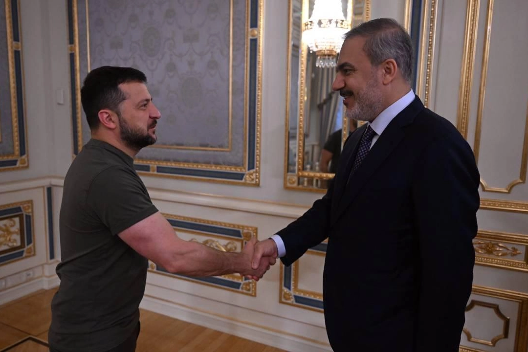 Türkiye Dışişleri Bakanı Hakan Fidan, Ukrayna'nın başkenti Kıyiv'de ilk önce Ukrayna Cumhurbaşkanı Volodımır Zelenskıy, Ukrayna Cumhurbaşkanlığı Ofisi Başkanı Andriy Yermak ve Ukrayna Başbakanı Denis Şmıgal ile bir araya geldi.