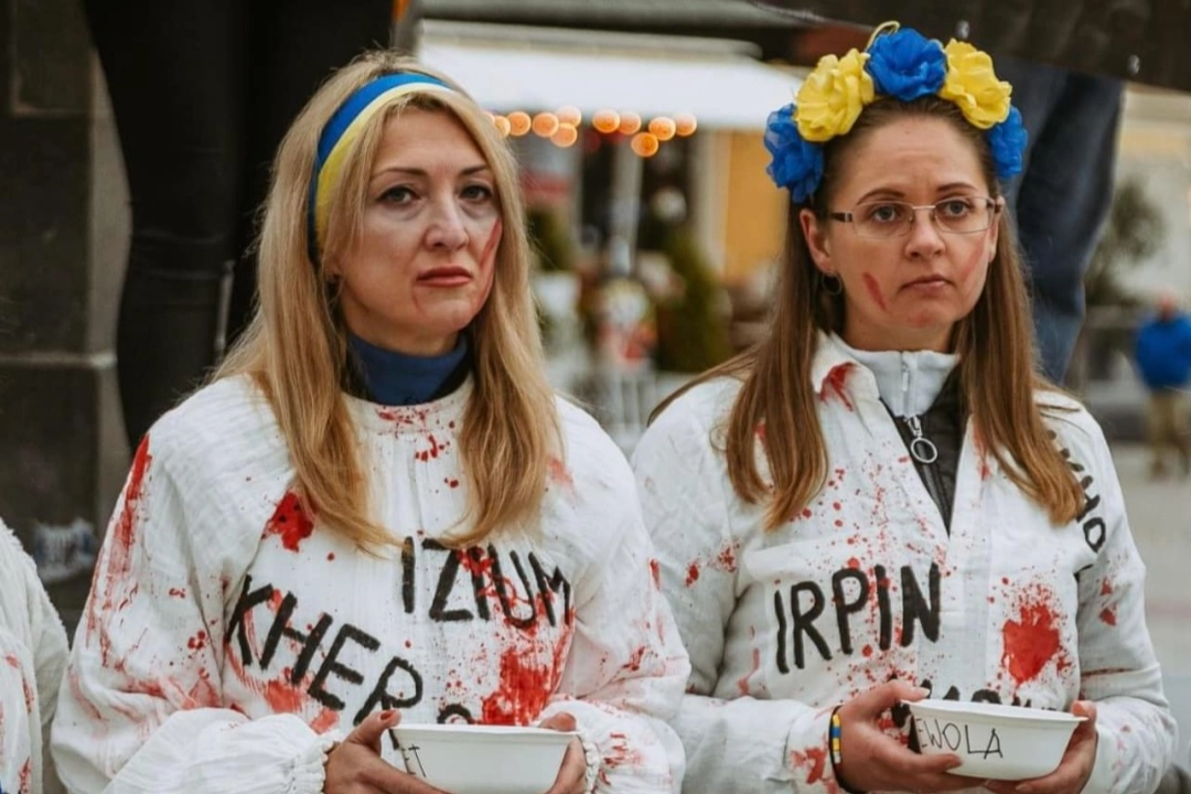 Organizatörler, İkinci Dünya Savaşı'nda ölen milyonlarca insanı anan uygar insanlığın "bir daha asla" dediğini, Rusya'nın ise "tekrar yapabiliriz" politikası izlediğini ve 11 yıldır Ukraynalıları her gün terörize ettiğini kaydetti.