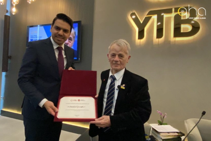 YTB, Kırım Tatar halkının milli lideri Mustafa Abdülcemil Kırımoğlu’na Türkiye Mezunları fahri üyeliği unvanı verdi ???? https://t.co/96wFacEWbm pic.twitter.com/vdF5JRs2vc