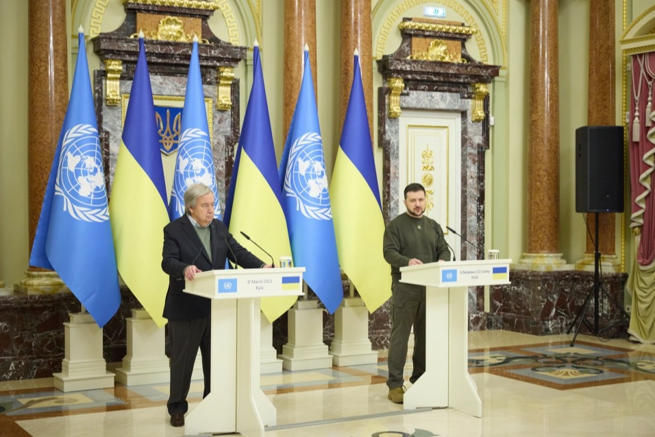 Rusya'nın Ukrayna'ya karşı işgal girişimi ve topyekun saldırıları birinci yılını geride bıraktı. Avrupa Birliği (AB) ve Birleşmiş Milletler (BM) ülkeleri Ukrayna'ya yönelik askeri, ekonomik ve insani yardımlarına devam ediyor. BM Genel Sekreteri Antonio Guterres dün Ukrayna'nın başkenti Kıyiv'e giderek, Cumhurbaşkanı Volodımır Zelenskıy ile görüştü. Ardından Zelenskıy ve Guterres ortak basın toplantısı düzenledi.