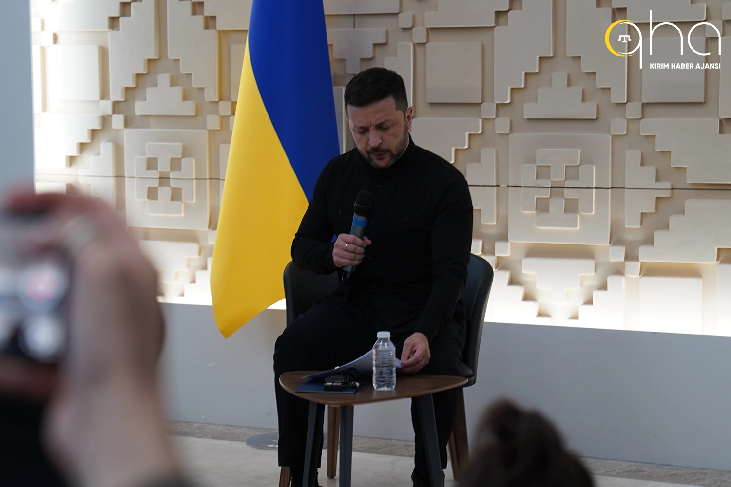 — QHA - Kırım Haber Ajansı (@qha_kirimhaber) May 15, 2025Basın toplantısında uluslararası basında son zamanlarda Ukrayna’nın barış için toprak tavizinde bulunması gerektiği yönündeki iddiaların Kırım Tatarları başta olmak üzere işgal altındaki Ukrayna topraklarında yaşayan insanları endişelendirdiğine dikkat çeken Kırım Haber Ajansı (QHA) Editörü Mustafa Koçyegit, Zelenskıy’a “İşgal altında yaşayan Ukrayna vatandaşlarının bu artan endişeleri karşısında ne söylemek istersiniz? Görüşmelerde, geçici olarak işgal altında olan Kırım ve diğer topraklar söz konusu olduğunda Ukrayna'nın tutumu nedir ve ne olacak?” sorusunu yöneltti.