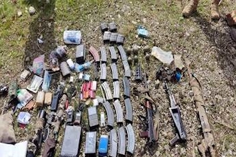 "1 adet Dragunov keskin nişancı tüfeği, 1 adet AK-47 piyade tüfeği, 1 adet AKS piyade tüfeği, 18 adet şarjör, 6 adet el bombası, 2 adet el telsizi ve çok sayıda mühimmat"