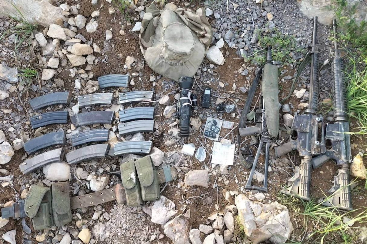 - 2 adet M-16 piyade tüfeği, - 1 adet AK-47 piyade tüfeği, - 5 adet AK-47 piyade tüfeği şarjörü, - 8 adet M-16 piyade tüfeği şarjörü, - 1 adet gece görüş dürbünü, - 2 adet USB harici bellek, - 4 adet hafıza kartı, - 1 adet ses kayıt cihazı."