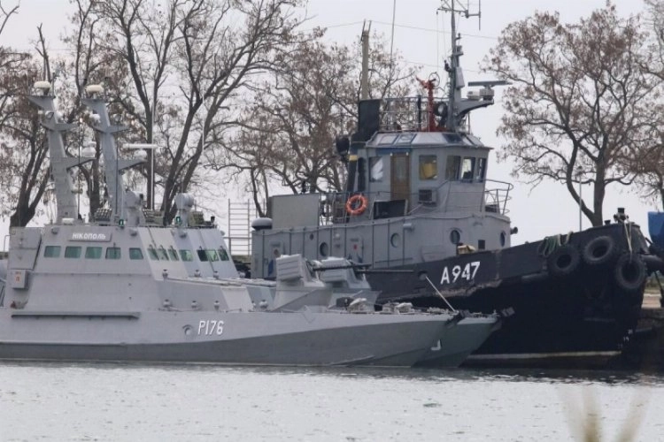 Rusya Federal Güvenlik Servisi (FSB) tarafından, Kerç Boğazı yakınlarında güya “Rusya karasularının” ihlal edildiği iddiasıyla düzenlenen silahlı saldırıdan sonra ele geçirilen Ukrayna savaş gemileri Kerç limanına götürüldü.