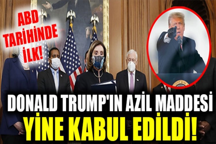 ABD Temsilciler Meclisinde dün yapılan oylamada, Başkan Donald Trump "isyana teşvik" ile suçlanarak, azil maddesi kabul edildi. Görev süresinin sona ermesine bir hafta kala Temsilciler Meclisinde azledilmesi istenen Trump, Kongre baskını öncesindeki açıklamaları nedeniyle o gün yaşanan şiddetten sorumlu tutuldu. Temsilciler Meclisi Genel Kurulunda yapılan oylamada, 232 evet oyu ile Trump'ın azli kabul edildi. Öte yandan 10 Cumhuriyetçi vekilin de evet oyu vermesi dikkatlerden kaçmadı. Ayrıca oylama ile birlikte, ülke tarihinde görevden alınması istemiyle iki kez suçlanan ilk başkan Donald Trump oldu.