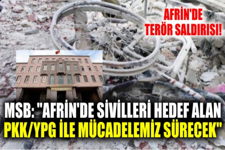 Bölücü terör örgütü YPG/PKK tarafından Zeytin Dalı bölgesindeki Afrin’de bombalı araçla terör saldırısı düzenlendi. Terör saldırısında 1'i çocuk 3 sivil daha katledildi, 3 sivil yaralandı. Milli Savunma Bakanlığı, "Sivilleri hedef alan PKK/YPG ile mücadelemiz sürecek!" açıklamasında bulundu.