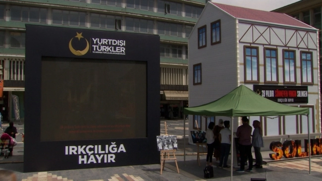 SOLİNGEN'DE KATLEDİLEN TÜRKLER İÇİN ANLAMLI ANMAYurt Dışı Türkler ve Akraba Topluluklar Başkanlığı (YTB) tarafından Solingen Faciası'nda katledilen 4'ü çocuk 5 Türk'ü anmak ve Avrupa'daki insan hakları ihlallerine karşı farkındalık oluşturmak amacıyla Genç ailesinin Untere Werner sokaktaki evinin bir kopyası Ankara Ulus Meydanı'nda yeniden oluşturuldu.