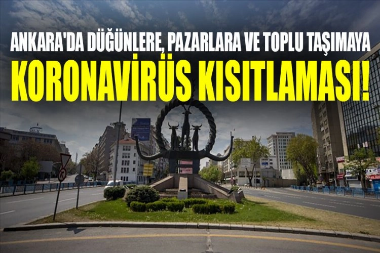 DÜĞÜNLER, PAZARLAR, CENAZE VE TOPLU TAŞIMAYA KISITLAMAAnkara'da 65 yaş ve üzeri ile kronik rahatsızlığı olan kişilerin; düğün, cenaze, taziye, pazar yeri, sosyal faaliyetler gibi alanlara girişleri kısıtlandı. Ayrıca Ankara'da taksi, dolmuş ve toplu ulaşım araçlarında şoför mahalli ile yolcular arasında fiberglas ile bölümleme yapılması kararlaştırıldı. Ankara'da sokak düğünlerinde düğün süresinin azami 2 saat olması ve toplu yemek verilmesinin yasaklanması kararlaştırıldı.