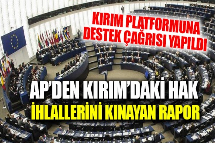 AP, İNSAN HAKLARI VE ÖZGÜRLÜKLERİNİN İHLALİNİ ŞİDDETLE KINIYOR"Avrupa Parlamentosundan yayımlanan belgede, "AP, işgal altındaki Kırım’da işgalci güçler tarafından ve Ukrayna yönetimi tarafından kontrol edilmeyen Donbas bölgelerinde Rusya tarafından desteklenen silahlı gruplar tarafından işlenen ifade, din, inanç, örgütlenme özgürlüğü ve barışçıl toplanma hakkı gibi temel insan hakları ve özgürlüklerinin geniş çaplı ve devamlı ihlallerini şiddetle kınıyor." denildi.