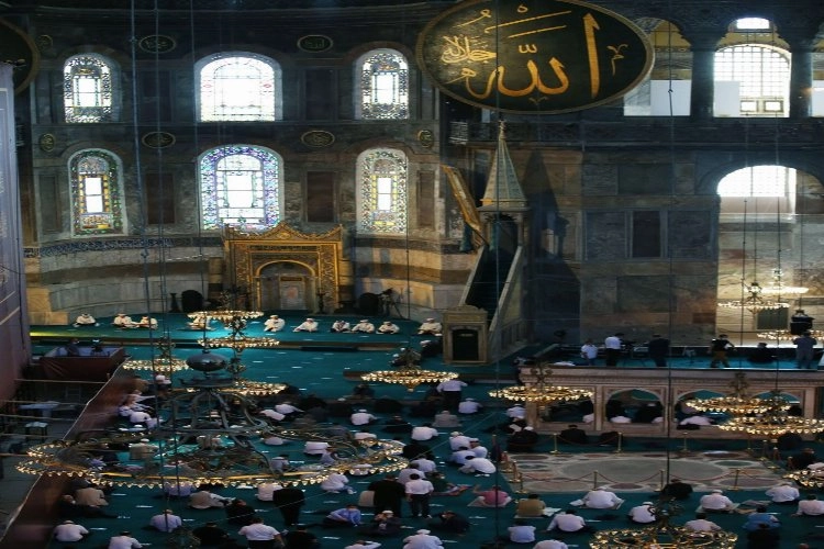 Türkiye'nin dünyada geniş yankı uyandıran kararı sonrası, Ayasofya'da 86 yıl aradan sonra ilk cuma namazı kılındı.