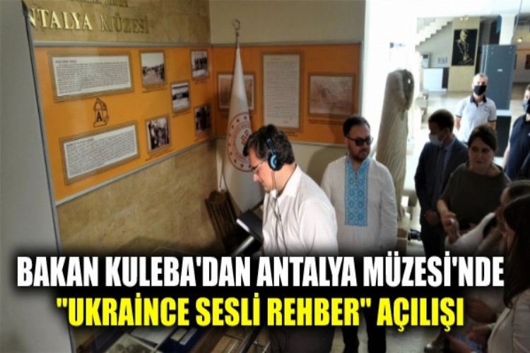 Antalya Müzesi'nde Ukraince "sesli rehber" sistemi hizmete açıldı. Açılışa katılan Ukrayna Dışişleri Bakanı Dmytro Kuleba, Ukraynalı turistleri Antalya'ya gelmeye davet ederek, "Buraya gelenler denizin keyfini çıkarırken aynı zamanda buranın kültürünü, tarihini öğrenebilir. Ukraynalı turistler için bunlar sesli rehber sayesinde daha da erişilebilir olacak." dedi.