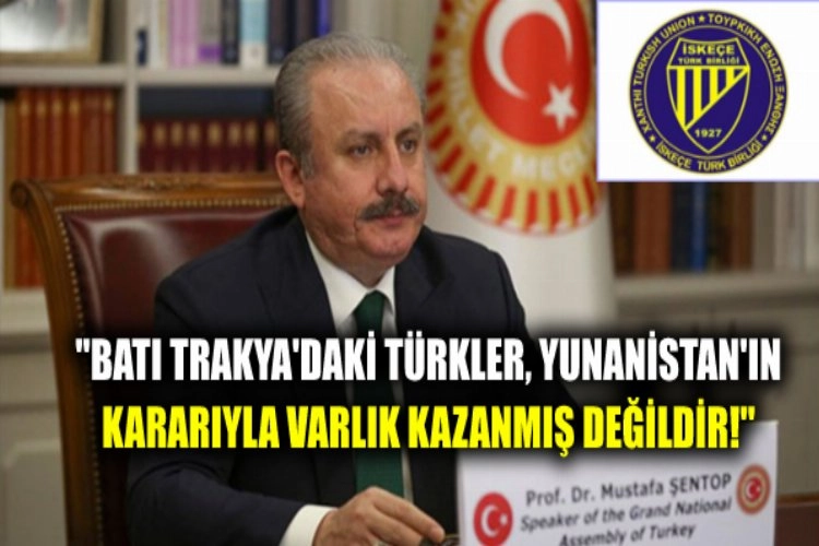Türkiye Büyük Millet Meclisi (TBMM) Başkanı Mustafa Şentop, İskeçe Türk Birliğinin "Batı Trakya Müslüman Türk azınlığına kimlik biçme ve empoze etme politikasına son verilmelidir" başlıklı açıklamasına destek verdi. Şentop, Twitter hesabından paylaştığı mesajda İskeçe Türk Birliğinin açıklamasını alıntılayarak şu mesajı kaydetti:"Yunanistan'ın Müslüman Türk varlığını yok saymaya çalışan söylemlerini kınıyoruz; bu tür yaklaşımlar bugüne kadar başarısız oldu, bundan sonra da başarısız olmaya mahkumdur. Batı Trakya'daki Müslüman Türkler Yunanistan'ın kararıyla varlık kazanmış değildir" dedi.