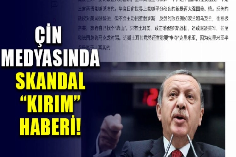 ÇİN MEDYASI: TÜRKİYE, KIRIM'I ÜLKEYE DAHİL ETMEK İSTİYOR (!)Ancak, Çin medyasında servis edilen söz konusu haberin, dezenformasyon ve provokasyonlarla dolu olduğu görüldü. Türkiye'ye yönelik gerçeği yansıtmayan, düşmanca ve saldırganca ifadeler sık sık Çin medyasında yer alıyor. Bahsi geçen köşe yazısında, Türkiye’nin cüretkâr ve küstah bir ülke olduğu ifade ediliyor. Öte yandan, dünyada pek çok ülkenin ABD ve Rusya arasında tercih yaptığı ancak Türkiye'nin her ikisini de kabul etmediği belirtiliyor. Türkiye'nin Rus savaş uçağını düşürdüğü, ABD ordusunu ülkeden "sınır dışı" ettiği ifadeleri yer alan haberde, Cumhurbaşkanı Erdoğan'ın Kırım Yarımadası'nın Türkiye'ye ait olduğunu "söylediği" ve Kırım için rekabet ettiği kaydedildi. İşte o haber: