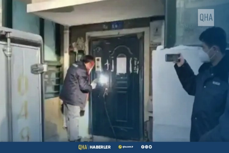 Acımasız uygulamalara başvuran Çin rejimi evlerin kapılarını dışardan kayak yaparak kapatıyor. İnsanların dışarıya çıkmasını tamamıyla engelliyor.