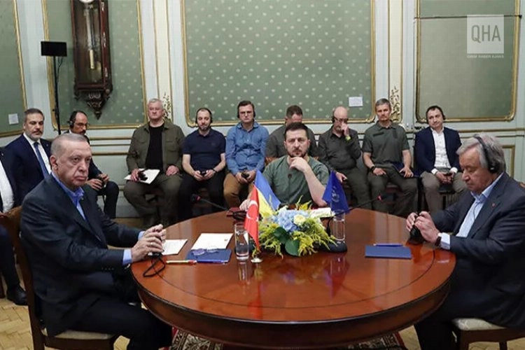 Cumhurbaşkanı Erdoğan, bugün akşam saatlerinde Kırım Tatar heyetini, Kıyiv Borıspil Havalimanı'nda kabul etti. Kabulde, Kırım Tatarlarının milli lideri, Ukrayna Milletvekili Mustafa Abdülcemil Kırımoğlu, Kırım Tatar Milli Meclisi Başkanı Refat Çubarov, Ukrayna Dışişleri Bakan Yardımcısı Emine Ceppar, Türkiye-Ukrayna Parlamentolararası Dostluk Grubu Başkanı, Ukrayna Milletvekili Rüstem Umerov, Kırım Tatar Milli Meclisi Başkan Yardımcısı, Ukrayna Milletvekili Ahtem Çiygöz yer aldı.