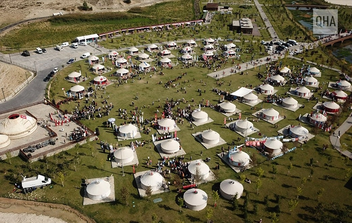 Okçular Vakfı tarafından organize edilen kutlamalarda Erdoğan, konuşmasından sonra beraberindeki heyetle mehter takımının gösterisi eşliğinde kutlama alanında kurulan temsili Türk otağına girdi.