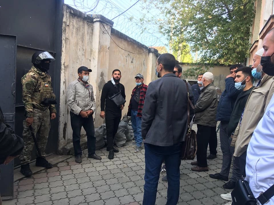 DESTEK VERMEK İÇİN TOPLANDILARRusya Vlasiha Askeri Temyiz Mahkemesinde bugün işgalcilerin Kırım Tatar halkına baskı uygulamak amacıyla kurguladığı, sözde “Hizb-ut Tahrir Davası” çerçevesinde mahkum edilen Kırım Tatar siyasi tutsakları Eskender Abdulganiyev, Arsen Abhairov ve Rüstem Emirüseinov’un temyiz davasının görülmesi planlanıyordu. Savunma avukatları, duruşmaya çevrimiçi olarak sözde Kırım Garnizonu Askeri Mahkemesinden kurulan video bağlantısıyla katıldı. Ancak avukat Lilya Gemeci’nin mahkeme kararına ilişkin hazırladığı ek şikayet dilekçesi müvekkili Arsen Abhairov’a iletilmediği için Vlasiha Askeri Temyiz Mahkemesi duruşmayı 25 Ekim’e erteleme kararı aldı. Kırım Tatar siyasi tutsaklara destek vermek için Kırım Garnizonu Askeri Mahkemesi önünde sayıları yüze yakın Kırım Tatarı toplandı.