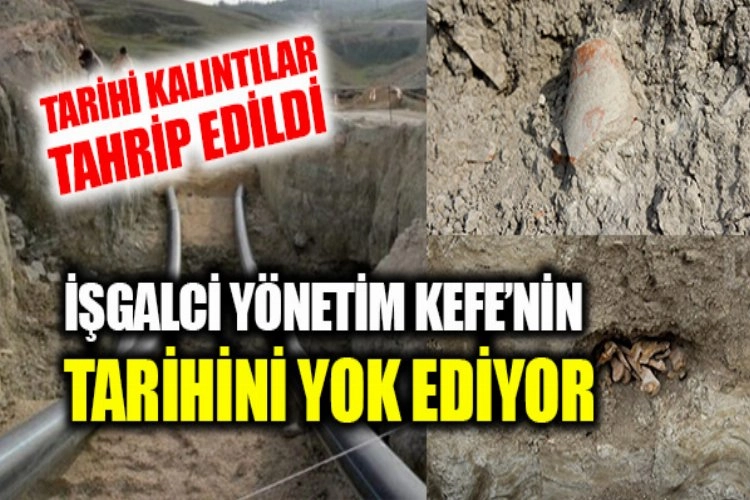 KEFE'DEKİ ARKEOLOJİK KALINTILAR TAHRİP EDİLİYORŞirket daha önce, çalışmalarını arkeologlarla koordine etmeksizin Ceneviz hendeğinin bir kısmını inşaat molozu ile doldurmuştu. Bunun sonucunda, su tankının yerleştirildiği yere doğru giden Novokarantinnaya Sokağı'nda borular için kazılmış hendeğin duvarlarında çok sayıda kemik ortaya çıktı. Bununla birlikte şirket yürüttüğü çalışmalar sonucu ortaya çıktığı inşaat molozu yola dökülüyor. Bunun sonucunda yolun ortasında Orta Çağ'dan kalma antik seramik parçalarını ve insan kemiklerinin parçalarını bulmak mümkün. Ayrıca Ceneviz Kalesinin yakınında yapılan hendek kazma çalışmaları sırasında antik bir malikanenin kalıntıları tahrip edildi ve burada da çok sayıda kemiğin bulunduğu bir toprak yığını ortaya çıktı.