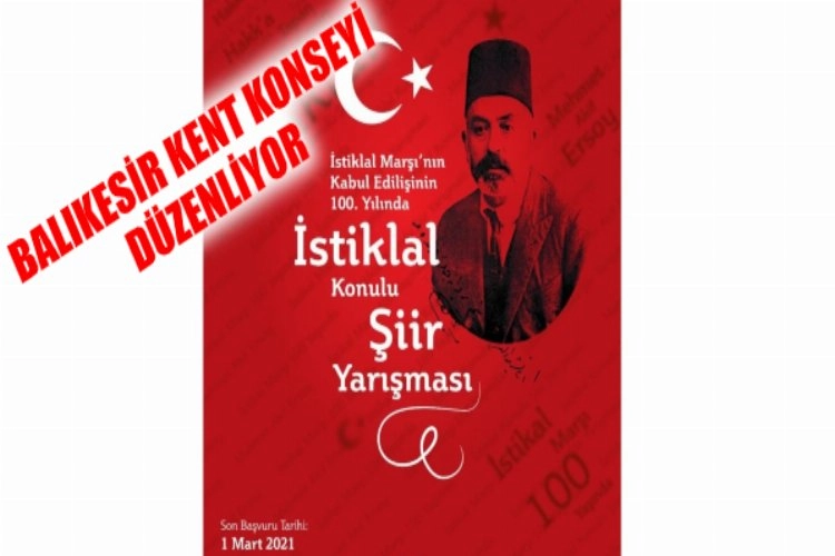 Balıkesir Kent Konseyi öncülüğünde ve Balıkesir Üniversitesi, Balıkesir Yazarlar ve Şairler Derneği, Türk Ocakları Balıkesir Şubesi'nin desteğiyle İstiklal konulu şiir yarışması düzenledi. Türk milletinin ve devletinin bağımsızlığının destanı, moral değerlerinin inşası ve bu değerler sisteminin sembolü olan İstiklal Marşının Türkiye Büyük Millet Meclisinde (TBMM) Milli Marş olarak kabul edilişinin 100. yılını anmak; İstiklal Marşında dile getirilen değerleri canlı tutmak amacıyla düzenlenen yarışmanın büyük ödülü 4 bin Türk Lirası lirası olarak açıklandı. Yarışmaya katılım için başlangıç tarihi 1 Ocak 2021 08:30 olarak belirtilirken son başvuru tarihi ise 1 Mart 2021 saat 17:00 olarak açıklandı.