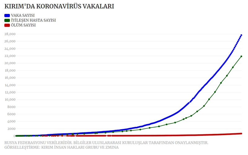 KIRIM’DAKİ GERÇEK VERİLER GİZLENİYOR!Bilindiği gibi insan hakları savunucuları, Kırım’da işgalcilerin açıkladığı koronavirüs vaka sayısının gerçeği yansıtmadığı, gerçek vaka sayısının, resmi verilerin çok üzerinde olduğunu ifade ediyor.