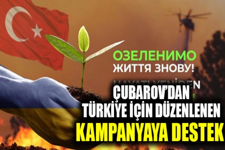ÇUBAROV: HERKES TÜRK HALKINA DESTEK VERMEK İÇİN KATKIDA BULUNABİLİRUkrayna’nın Türkiye’ye yardım sağlayan ilk ülkelerden biri olduğunu, Ukrayna Devlet Acil Servisine ait 2 uçağın Türk itfaiyecilere orman yangınlarını söndürme konusunda yardım ettiğini hatırlatan Çubarov, "Ukrayna’nın dostu Türk halkına, orman yangınlarında kaybedilen ağaçların yeniden dikilmesi konusunda yardım etme konusundaki iyi niyetler, Ukraynalı yetkilileri, özel sektör, sivil toplum kuruluşları ve ilgili tüm vatandaşları bir araya getirdi. Afet mağdurlarına destek olmak ve Türkiye-Ukrayna Dostluk Ormanı oluşturmak gibi önemli misyonu hayata geçirmek amacıyla ‘Hayatı Yeniden Yeşertelim!’ isimli yardım kampanyası başlatıldı. Bu kampanyaya her biriniz katılarak eşsiz doğal miras olan ormanları restore etme sürecinde, Türk halkına destek vermek için maddi katkıda bulunabilir." diye belirtti.