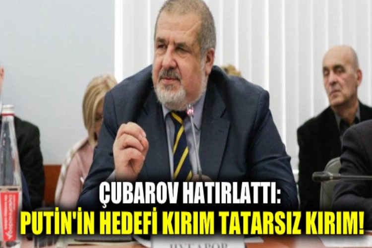 PUTİN'İN HEDEFİ KIRIM TATARSIZ KIRIM!Moskova'nın işgal ettiği yarımadayı güçlü bir askeri üsse dönüştürdüğünü söyleyen Çubarov, işgalcilerin bölgedeki Türk varlığını hedef aldığını bir kere daha hatırlatarak, "Kırım yarımadasından Kırım'ın yerli halkını sürüyor. Putin, 2. Yekaterina ve Stalin’in 'Kırım Tatarları olmadan Kırım' ilkelerini devam ettiriyor. Moskova, Kırım'ın yerli halkı olan Kırım Tatarlarını tamamen ortadan kaldırmak için acilen kendi vatandaşları olan etnik Rusları, Kırım topraklarına yerleştiriyor.” ifadelerini kullandı.