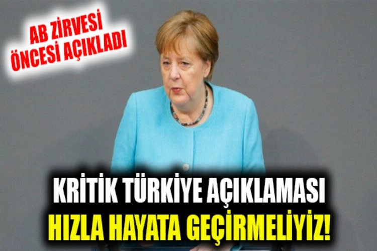 "GÖÇ SORUNUNU ÇÖZEBİLİRİZ"Merkel, göç sorunun çözümüne ilişkin, "Mevcut ve gelecek göç sorunlarını ancak Türkiye ile diyalog içinde çözebileceğimiz açıktır. Mart ayında anlaştığımız üzere, AB olarak ortak çıkarlar üzerindeki iş birliğimizi ilerletmek için şimdi Türkiye ile diyalog gündemini hızla hayata geçirmeliyiz." ifadelerini kullandı. AA'nın aktardığına göre, Türkiye ile görüşmelerde Gümrük Birliği'nin modernleştirilmesinin ilerletilmesinin yanında sağlık, iklimin korunması ve terörle mücadele gibi konuların da ele alınması gerektiğini anlatan Merkel, Türkiye ile hukuk devleti ve temel haklarının uygulanması alanlarında görüş ayrılıkları olmasına rağmen stratejik iş birliğinin ilerletilmesi gerektiğini kaydetti.