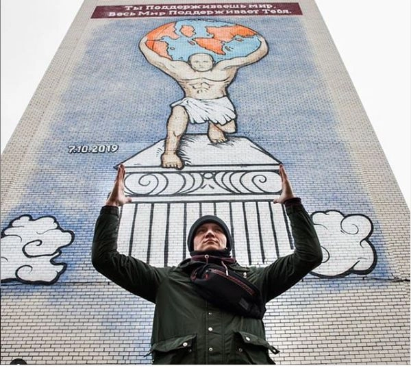 Putin'in 7 Ekim 2019 tarihinde doğum gününe binaen Yekaterinburglu ressam İvam Pçelin, Rusya'nın Kolomna şehrindeki dokuz katlı bir binanın duvarında Yunan tanrısı Atlas görünümlü omuzlarında dünya küresini tutan Putin'in dev resmini çizdi.