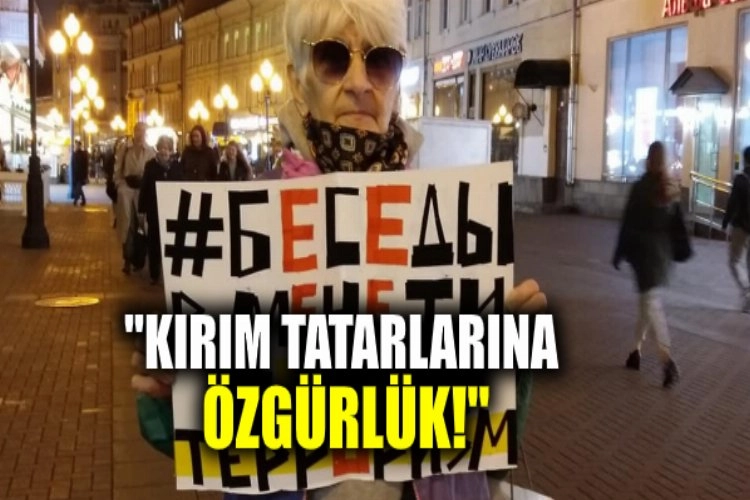 Eylem sırasında aktivistler, "Bahçesaray'da 7 kişiye 110 yıl!", "Din suç değildir!", "Kırım Tatarlarına özgürlük!", "Camideki konuşmalar terör eylemi değildir" yazılı pankartlar açtı.
