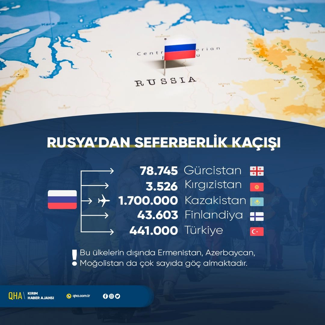 Rusya devlet başkanı Vladimir Putin'in 21 Eylül 2022 tarihinde kısmi askeri seferberlik ilan etmesinin ardından Ruslar ülkeyi terk ediyor. Silah altına girmek istemeyenler, Kazakistan, Gürcistan, Finlandiya ve Moğolistan sınırında yoğun kuyruklar oluşturdu. Parası olan Ruslar ise Türkiye’ye giden özel uçuşlara yöneldi.