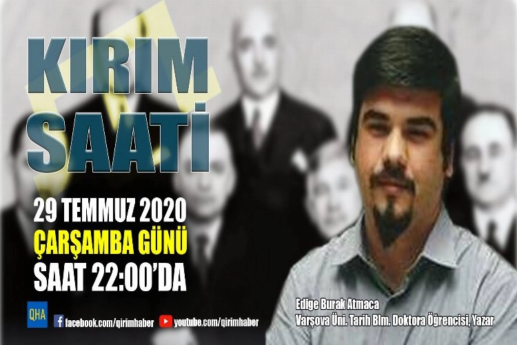 Kırım Haber Ajansı Türkçe Sayfa Editörü Ömer Cihad Kaya'nın sunumuyla gerçekleştirilen Kırım Saati programının 29 Temmuz 2020 tarihindeki konuğu, Varşova Üniversitesi Tarih Bölümü Doktora öğrencisi, Kırım Tatarı Edige Burak Atmaca oldu.
