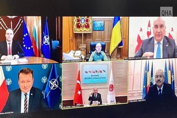 Milli Savunma Bakanı Hulusi Akar, Bulgaristan Savunma Bakanı Dragomir Zakov, Polonya Savunma Bakanı Mariusz Błaszczak, Romanya Savunma Bakanı Vasile Dincu, Ukrayna Savunma Bakanı Oleksii Reznikov ve Gürcistan Savunma Bakanı Juansher Burchuladze ile altılı video konferans toplantısında görüştü.