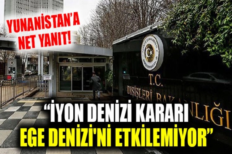 Yunanistan'ın İyon Denizi'nde karasularını 12 deniz miline çıkarması ile ilgili Türkiye'nin Dışişleri Bakanlığından bir açıklama geldi. Bakanlık Sözcüsü Hami Aksoy, "Yunanistan’ın İyon Denizi’nde karasularını 12 deniz miline çıkarmaya yönelik tasarrufu, Mora Yarımadası’nın güneyinde sona ermekte ve Ege Denizi’ni hiçbir şekilde etkilememektedir." dedi.