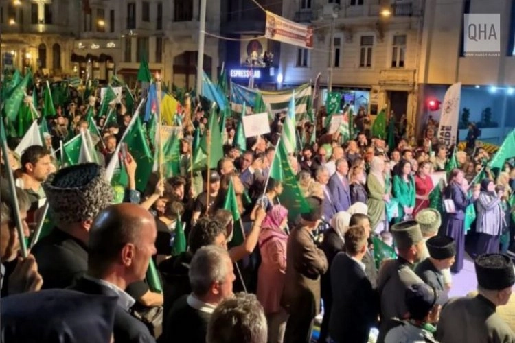 ÇERKES SÜRGÜNÜ YIL DÖNÜMÜNDE RUSYA BAŞKONSOLOSLUĞU ÖNÜNDE EYLEM YAPILDIRusya İstanbul Başkonsolosluğu önünde Büyük Çerkes Sürgünü’nün 158’inci yıl dönümünde miting düzenlendi. Dün sürgünün yıl dönümünde düzenlenen eylemde, Rusya’nın işgalci politikasına maruz kalan Çerkes, Kırım Tatar ve Ukrayna’nın bayrakları açıldı.