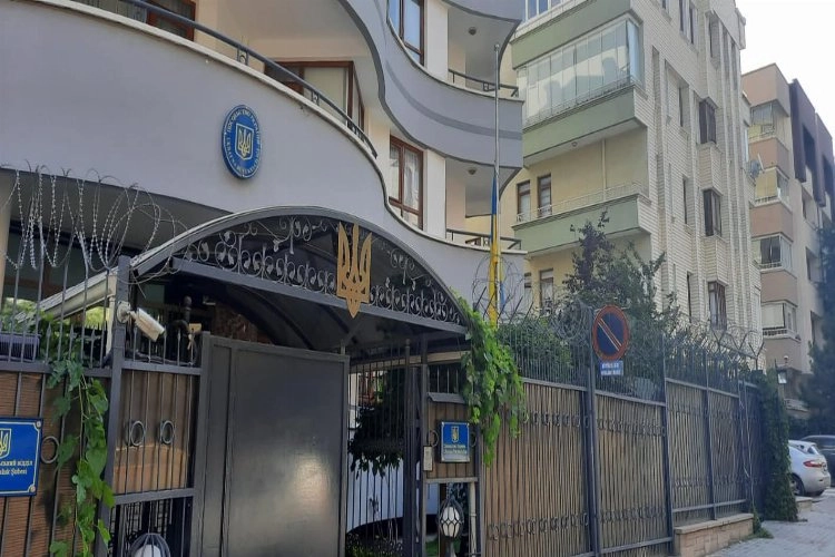 Ukrayna'nın Ankara Büyükelçiliğinde, bugün Ukrayna Savunucuları Anma Günü'ne binaen Ukrayna bayrağı yarıya indirildi.