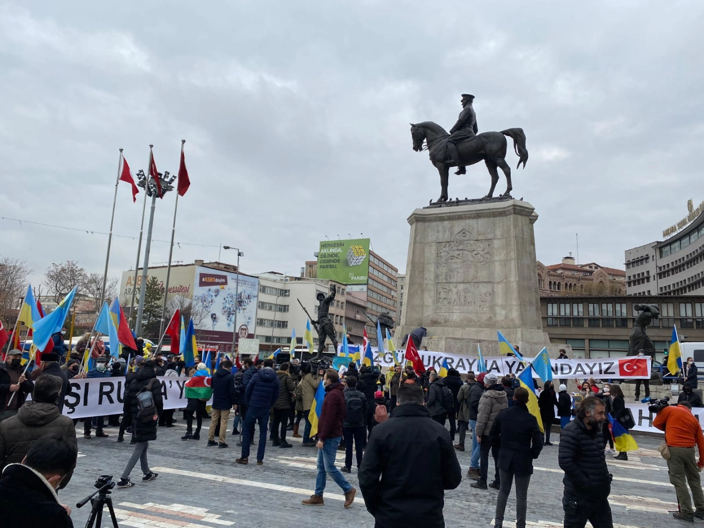 Türkiye'de yaşayan Ukraynalılar ve Kırım Tatarları, Ankara Ulus Meydanı'nda Rusya'yı protesto etti. Ellerinde Türkiye, Ukrayna ve Kırım Tatar bayrakları olan protestocular “Savaşa Hayır”, “Katil Putin Ukrayna’dan defol”, “Ankara, Kıyiv omuz omuza”, “Yaşa Türkiye yaşa Ukrayna” sloganları attı.