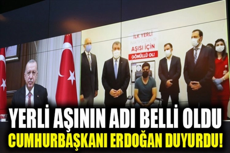 YERLİ AŞININ İSMİ: TURKOVACSağlık Bakanı Fahrettin Koca, Faz-3 uygulaması yapılmadan önce Cumhurbaşkanı Erdoğan'a yerli aşı ile ilgili isim önerisi olup olmadığını sordu. Erdoğan, Türkçenin önemine ve kolay telaffuza vurgu yaparak, "Aşının ismi ile ilgili gönlümden geçen TURKOVAC. Bu isim uygundur" dedi.