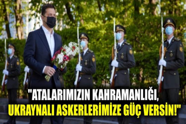 2. Dünya Savaşı'nda topraklarını Nazilerden koruyan ve kurtaran Ukraynalıların başarılarına övgüde bulunan Zelenskıy, "Atalarımızın kahramanlığı, savunucularımız olan yeni nesil Ukraynalı askerlerimize güç versin. Buna inancımızla, barış ümidiyle, 2.Dünya Savaşı'nda topraklarımızı Nazilerden koruyan ve kurtaran tüm Ukraynalılara bugün teşekkür ediyor ve eğiliyoruz." dedi.