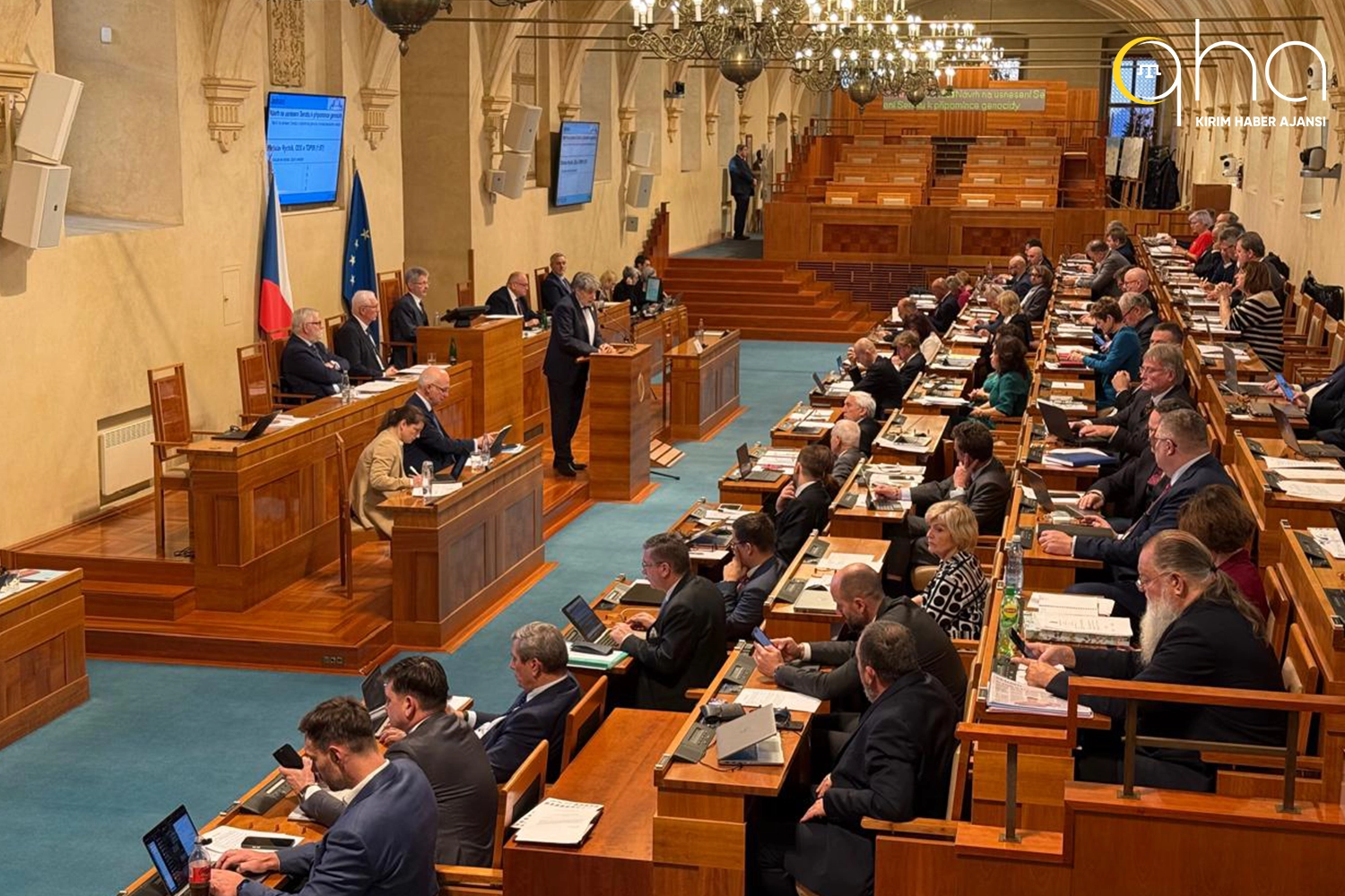 — QHA - Kırım Haber Ajansı (@qha_kirimhaber) December 18, 2024Çekya Senatosunda yapılan genel kurula Kırım Tatar halkının millî lideri ve Ukrayna Milletvekili Mustafa Abdülcemil Kırımoğlu, Kırım Tatar Milli Meclisi (KTMM) Başkan Yardımcısı Nariman Celal, KTMM Başkan Yardımcısı ve Ukrayna Milletvekili Ahtem Çiygöz, Ukrayna milletvekilleri Mıkola Knyajıtskıy ile Mariya Mezentseva ve KTMM Üyesi ve Kırım Tatar Kaynak Merkezi Başkanı Eskender Bariyev, KTMM Üyesi Rıza Şevkiyev, Kırım Milli Varlık Vakfı Başkanı Lenur Mambetov, Kırım Tatar Milli Kurultayı Delegesi ve Kırımoğlu'nun Danışmanı Şevket Usmanov misafir olarak katıldı.