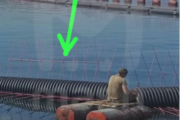 Rus sosyal medya hesaplarından paylaşılan fotoğraflarda, bariyerlerin su üstü ve su altı insansız hava ve deniz araçlarına karşı bir koruma sağlamak için tasarlandığı öne sürüldü.