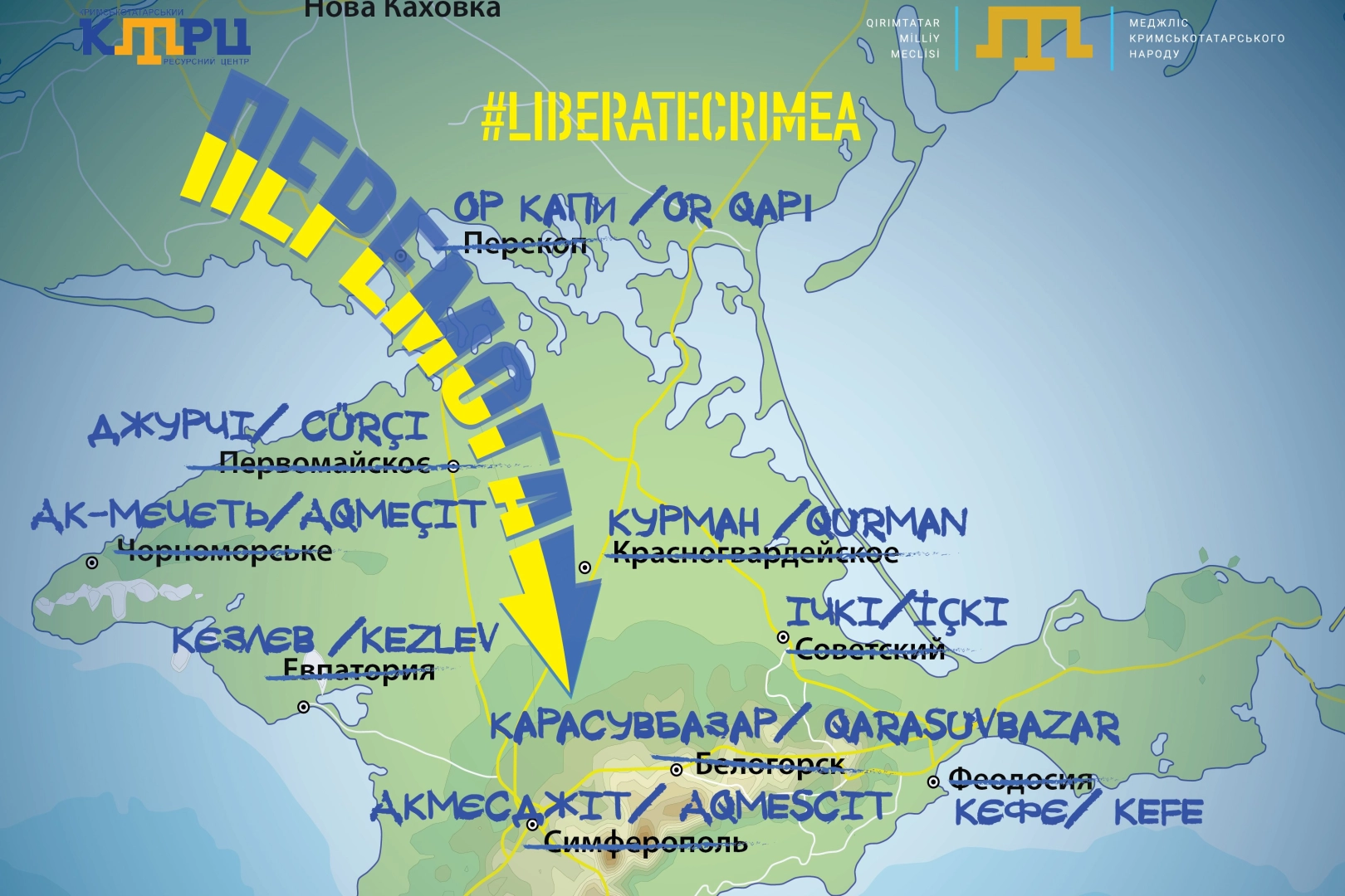 Kırım Tatar Milli Meclisi (KTMM) ve Kırım Tatar Kaynak Merkezi “İsimleri geri getirelim, Kırım'ı da geri alırız” isimli enformasyon kampanyası başlattı. Kampanya, geçici Rus işgali altında bulunan Kırım’daki yerleşim yerlerine, tren istasyonlarına, nehirlere ve göllere tarihi adlarının geri getirilmesini sağlamayı amaçlıyor.