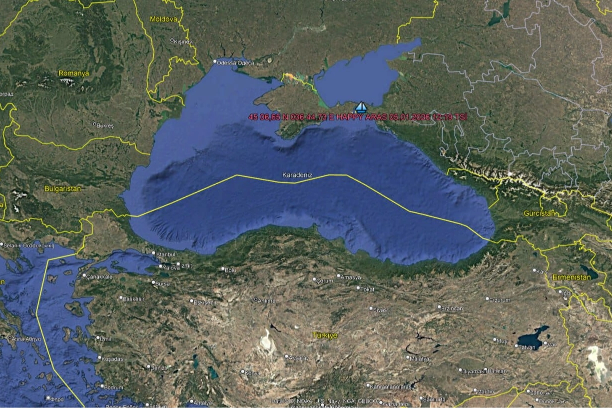 "Karadeniz'de sürüklenerek Kerç Boğazı güneyinde karaya oturarak su alan Türk sahipli HAPPY ARAS gemisindeki 3'ü Türk 11 mürettebatın tamamı AAKKM koordinesinde emniyetle gemiden ayrılmıştır. Mürettebatın sağlık durumu iyidir."