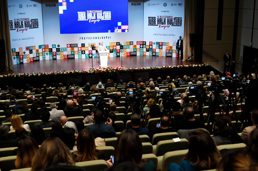 Türkiye Cumhuriyeti Kültür ve Turizm Bakanlığı tarafından düzenlenen 10. Milletlerarası Türk Halk Kültürü Kongresi'nin ikinci günü, yoğun katılıma ev sahipliği yaptı. Cumhurbaşkanlığı Külliyesi'nde düzenlenen kongre törenine bugün Cumhurbaşkanı Recep Tayyip Erdoğan'ın eşi Emine Erdoğan, Kültür ve Turizm Bakanı Mehmet Nuri Ersoy, 230 bilim insanı ve dünyanın birçok yerinden davetli katıldı. Etkinlikte, Türk halk kültürüne ait el sanatları ve kültürel değerler sergilendi.