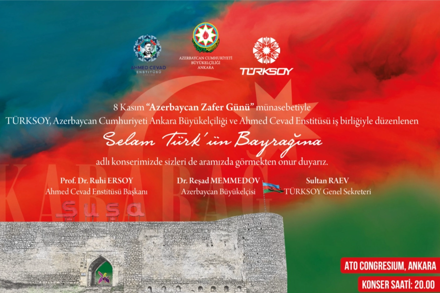 Azerbaycan Zafer Günü münasebetiyle, 8 Kasım 2024 tarihinde Türkiye'nin başkenti Ankara'da Uluslararası Türk Kültürü Teşkilatı (TÜRKSOY), Azerbaycan Cumhuriyeti Ankara Büyükelçiliği ve Ahmed Cevad Enstitüsü iş birliğiyle "Selam Türk'ün Bayrağına" adlı konser gerçekleştirilecek. ATO Congresium'da gerçekleşecek olan konser, saat 20.00'de başlayacak. Ayrıca etkinlik vesilesiyle icra edilecek olan sergi de saat 19.15'te katılımcıların ziyaretine açık olacak.