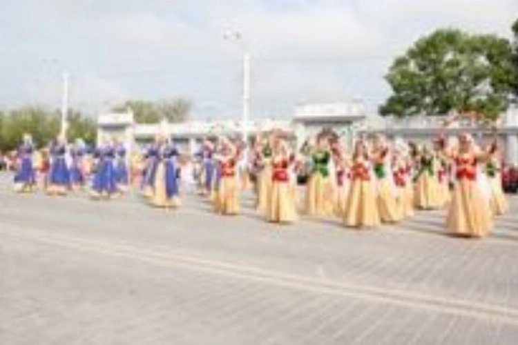 Kutlama programında takma ayaklı adamlar, canlı heykeller ve çocuk grupları yer aldı.