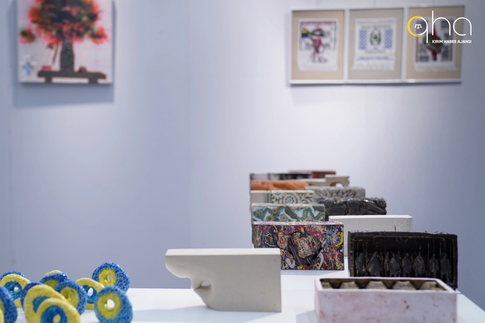 Ukraynalı sanatçılar tablo, fotoğraf ve ilginç sanat eserleriyle fuarda yerini aldı. Katılımcılar, savaşın ve sanatın izlerini taşıyan Ukrayna standına yoğun ilgi gösterdi.