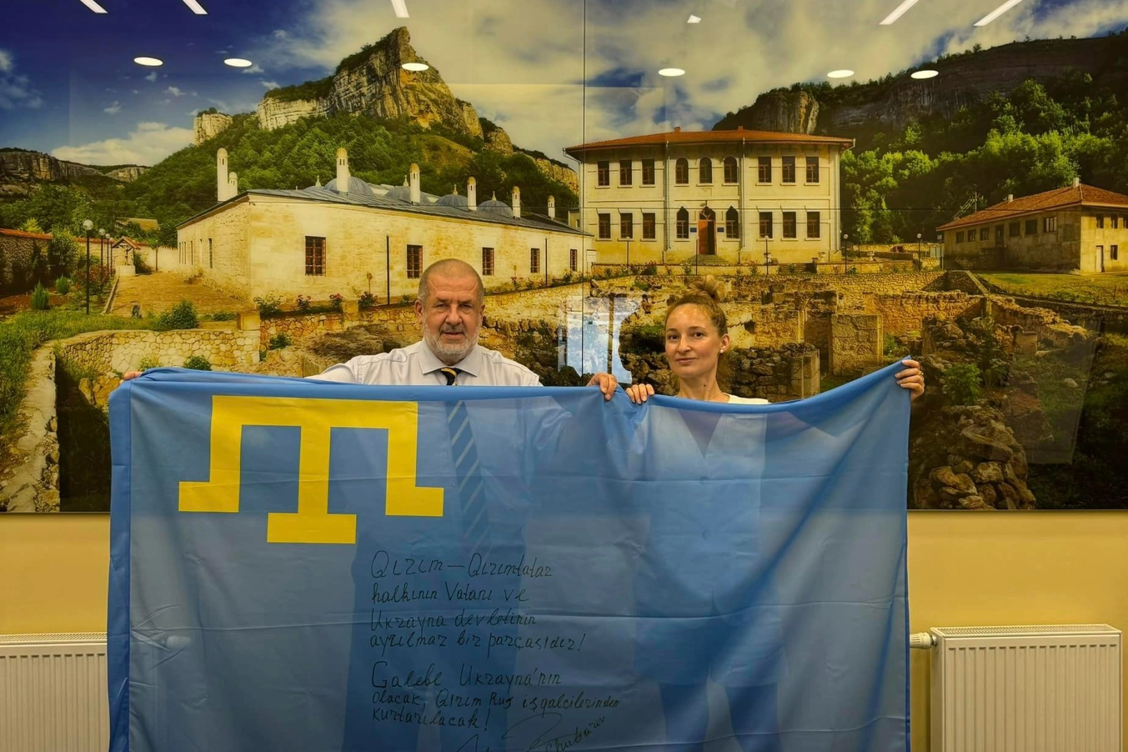Yanko, Kırım Tatar bayrağının 2014’ten sonra işgalcilerin baskısı nedeniyle Kırım’ı terk etmek zorunda olan ve şu an Kırım’ı işgalden kurtarma üzerinde çalışan kişiler tarafından imzalanacağını aktardı.