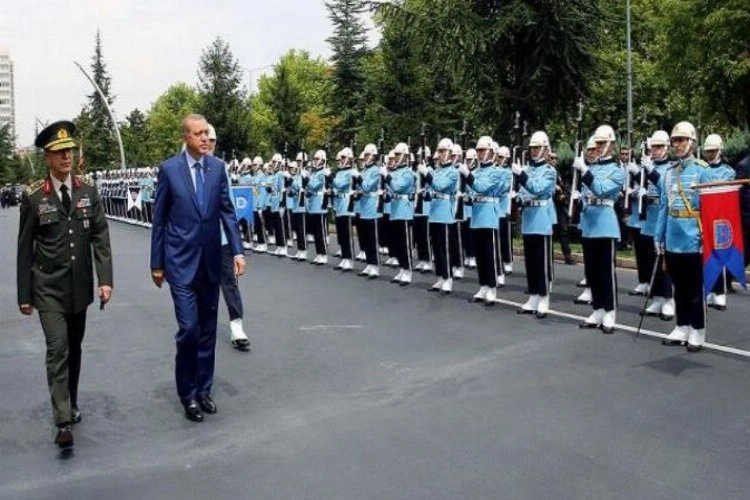 Türkiye Cumhurbaşkanı Recep Tayyip Erdoğan, 15 Temmuz'da Fetullahçı Terör Örgütü (FETÖ) tarafından gerçekleştirilen darbe girişimi sırasında, başta Genelkurmay Başkanı Orgeneral Hulusi Akar olmak üzere çok sayıda generalin rehin alındığı karargahta, Cumhurbaşkanlığı Muhafız Alayı'nın bando takımınca karşılandı.