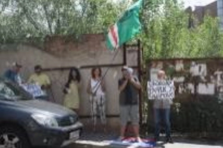 Rusya’nın Kiev Büyükelçiliği Konsolosluk Bölümü binasının önünde Rusya yönetiminin siyasi baskılarına uğrayan Rafis ve Nafis Kaşapov kardeşlere destek mitingi düzenledi.