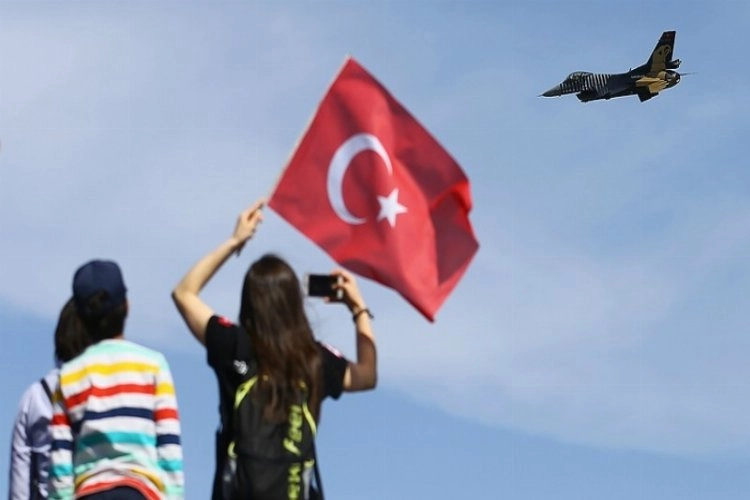 Gösterinin ardından, Konya semalarında yükselen Türk Yıldızları'nın gösterisi ise nefes kesti. Uçaklar, ters tırmanış ve dönüş, iniş takım kesişimi, çift kesişimi, iniş takımları terste selamlama, tip ucu ve üç boyutlu sema hareketleri sergileyerek gökyüzüne kalp figürü çizdi.